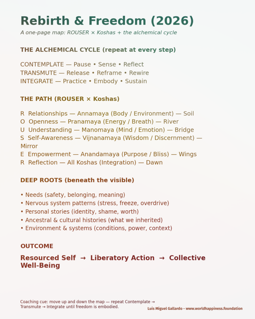 RebirthAndFreedom #WorldHappinessFoundation #WorldHappiness #Happiness2026 #RouserLeadership #ROUSER #ConsciousLeadership #HumanCenteredLeadership #WellbeingAtWork #OrganizationalWellbeing #HolisticLeadership #LeadershipCoaching #ExecutiveCoaching #TransformationalLeadership #InnerWorkOuterImpact #CollectiveWellbeing #SystemsChange #CultureTransformation #PurposeDrivenLeadership #SpiritualLeadership #EmbodiedLeadership #EmotionalIntelligence #MindfulLeadership #SelfAwareness #Empowerment #ReflectionPractice #HealingCenteredLeadership #Koshas #Anandamaya #Happytalism